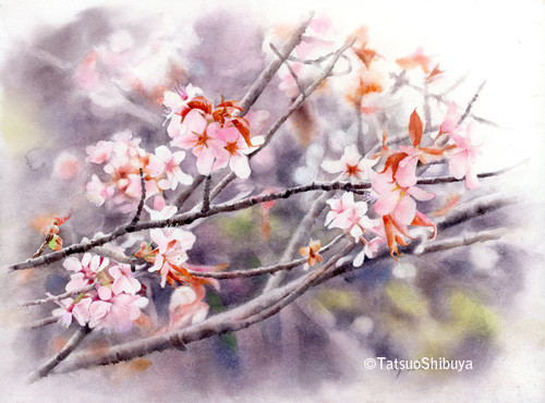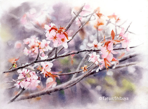 高原の風は冷たいけれど、山桜の中を歩き鳥の声は嬉しそうでした。2015.12制作 -群馬県妙義山-
